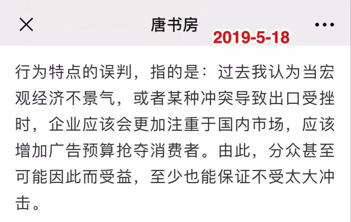 对广告客户行为特点的误判,导致我认为如果遇到宏观经济下滑,或者my战导致的出口受阻,企业尤其是消费型企业将不得不加强对国内市场的竞争,而广告将是加强竞争的主要手段之一。