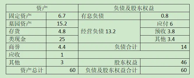 福寿园2019年度资产负债表简化处理结果(单位人民币亿元):
