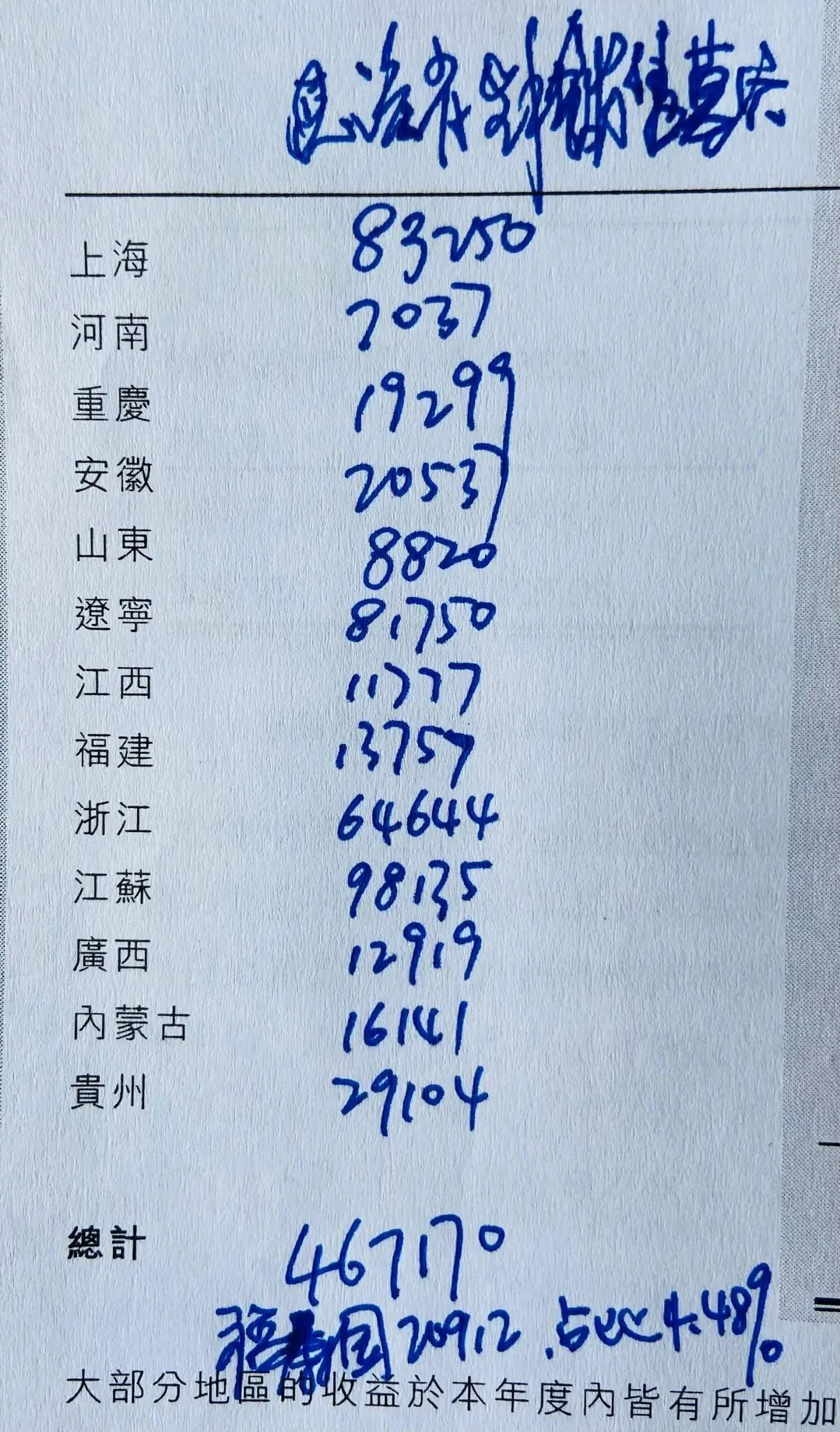 懒得制表,我直接发手稿。我统计了2018年福寿园有业务的省市,当年销售墓穴的总数。