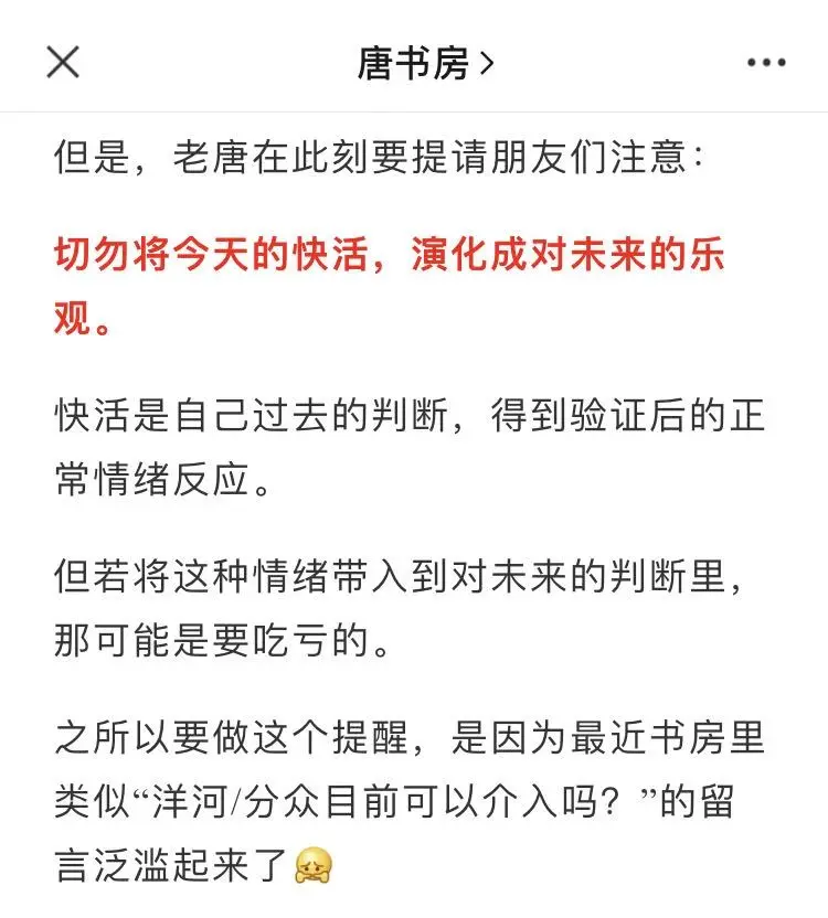 唐书房2020-12-11周六的实盘周记乌鸦了?但是,可是,但可是,并不是老唐干的,老唐一股未卖😝不要问我发生啥了,我也不晓得。在我看来,接近高估区域,随时都可能会借’故’下跌。这个’故’千奇百怪,防不胜防,我有自知之明,早就放弃预防和猜测了