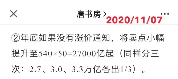 2020年10月14日,在《分众传媒2020年三季报及估值调整》一文里,老唐按照自己对分众当年的利润预计,将卖点小幅上调为:1585亿、1745亿和1900亿各卖出1/3。