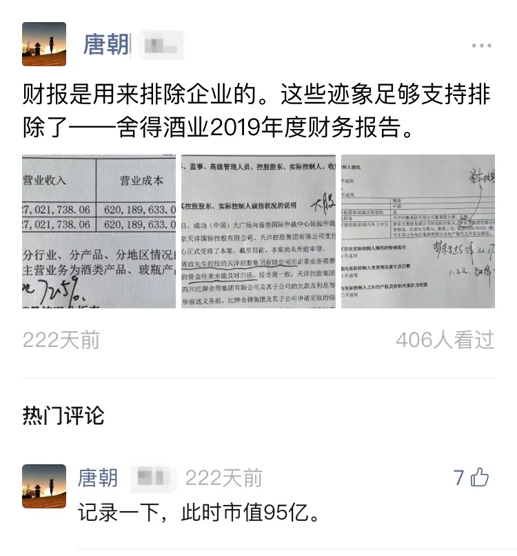 说到这里,给大家添个笑谈:2020年五六月间(222天以前,这日子够2的),老唐翻看了舍得酒业2019年年报。