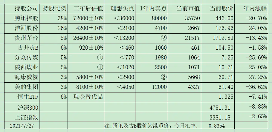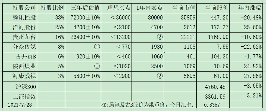 其中美的集团,是今年6月21日73.34买入1%,7月26日64.5买入2%(汗,前天买的,妥妥的付费一夜情),平均买入位置67.45元。