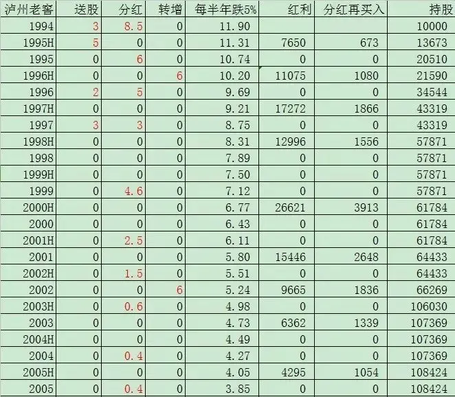 实际上,老唐还真模拟过另一个计算,若是每半年股价下跌幅度是10%,其他条件不变,你会在2009年上半年拥有超过10亿股,成为泸州老窖控股股东。并在2014年上半年,买光了泸州老窖所有股份,手头还剩余4亿多分红款没地方花。