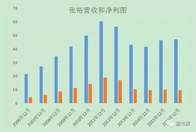 这是一张张裕的营收和净利润图,图中我们可以看见,危机后的这几年,张裕的净利润非常稳定,保持在10亿左右,而营收在2015和2016年已经开始缓慢增长。