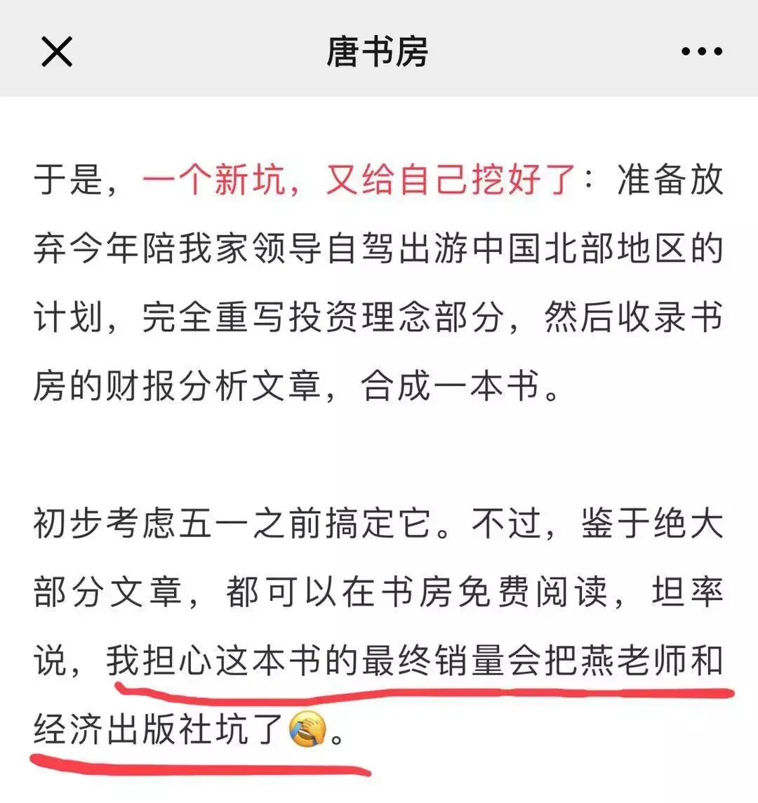 老唐非常高兴。高兴自己的分享得到读者认可;高兴没有坑到出版社和编辑燕丽丽老师;高兴在这个知识付费满天飞的时代,老唐的免费分享,照样换来读者的真心回报——老实人也不是就一定吃亏早在去年12月中旬,老唐就说过「书中只有两小节内容是书房没有发表过的,从经济的角度看,完全可以不用再花钱。即便是这两小节,我也会在书房发出来。」今天兑现这个承诺,让不愿意或不舍得买书的朋友免费获得相关知识一小节内容是《价值投资实战手册》46页,标题叫《如何面对铁公鸡?》,它是紧接在《散打投资13》和《散打投资14》之后的补充内容,今天就将它命名为《散打投资15》吧!