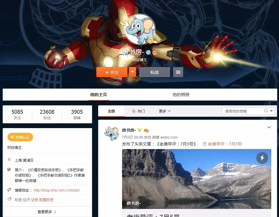 该李鬼不知用何种手段,获得新浪微博官方认证加V。宣称是《价值投资实战手册》、《手把手教你读财报》、《手把手教你读财报2》作者唐朝唯一的微博,并将老唐本人的真实博客链接于主页,欺诈性极强,截止目前已经有超过2万名粉丝关注。