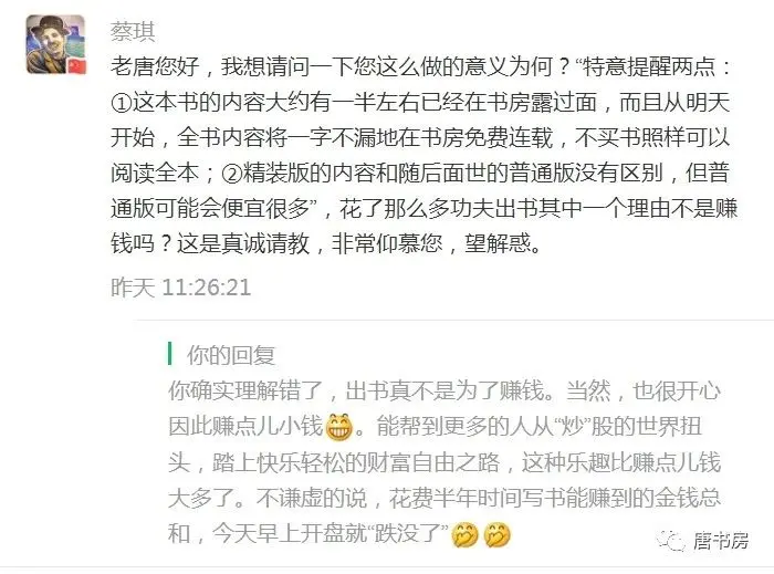 为了尽最大可能保证“铁粉”买到有限的签名书,老唐一直憋着,不透露书名不透露内容,尽量给这些朋友减少竞争对手。