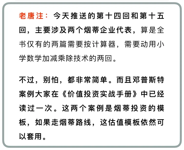 巴菲特这样总结教训:你沿着街道走,也许也会碰到一个烟蒂,它湿漉漉的让人很恶心,你避开了。可这是不要钱的,也许还剩下最后一口。