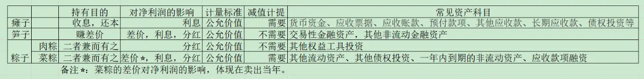 它最容易理解。当一项资产被归入笋子类后,市值波动+持有期间收到的股息或利息,都计入公司利润表的投资收益。