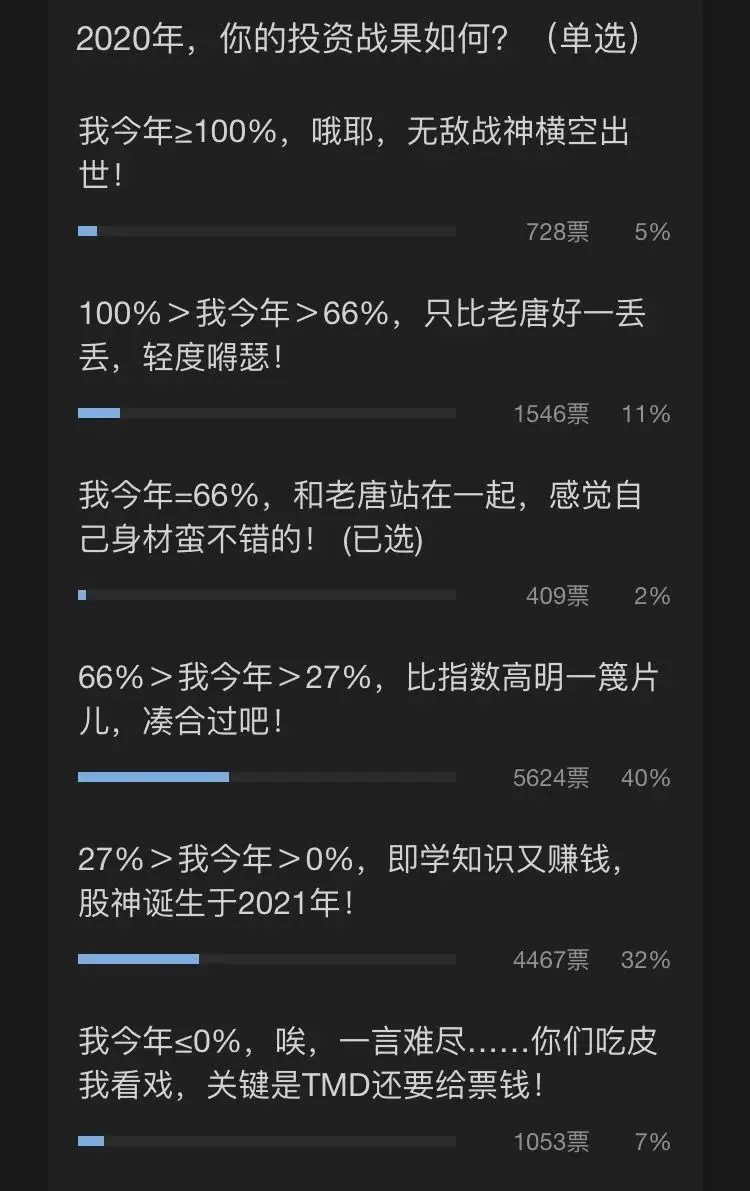 2020年12月31日实盘周记里,搞了一个投票调查。