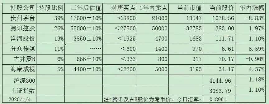 因此,没有新增投资的假设下,2020年利润=2019年初老唐实盘全部股票市值——实际上是略超,因为不考虑孰低原则的话,2019年收益率是59%,2020年是69%,1.59×69%≈1.1。