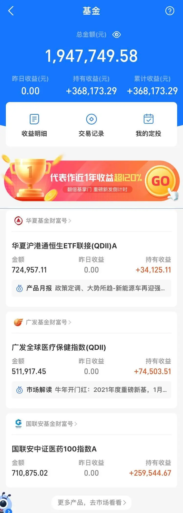 除了老唐实盘之外,老唐还有部分基金投资。