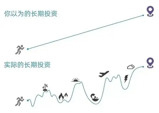 其实逻辑很简单,8倍也好,80倍也罢,首先你要有能力持有全程才有机会赚到。而任何股票的股价旅途,都不是一根直线向东北方向前行,它更像下图所示