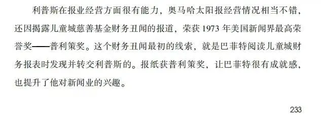 其中有不少男孩,还是通过以慈善捐款的名义,从一家收养男孩的孤儿院搞来的——这个孤儿院就是巴菲特1973年在《奥马哈太阳报》时期揭露过的儿童城。下图是《巴芒演义》233页表述。