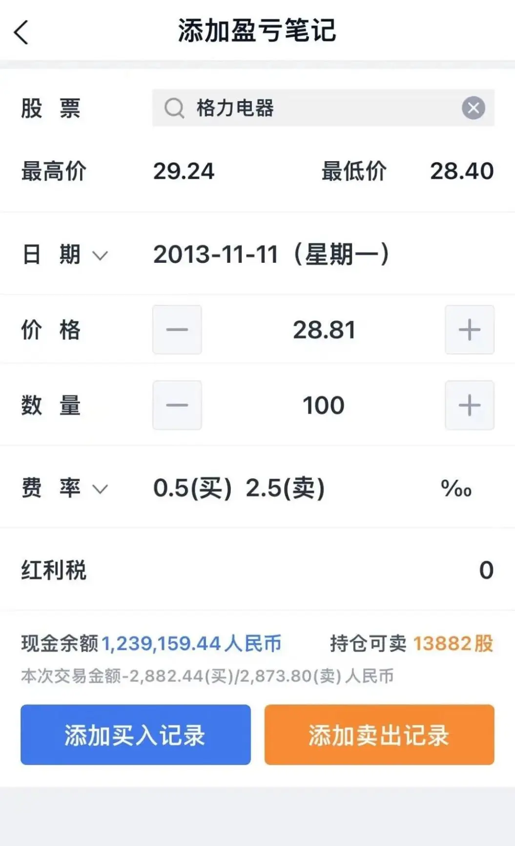 在腾讯自选股里,使用盈亏笔记功能,直接选择在2013年11月11日买入,系统会自动显示当日(真实)收盘价,就以那个成交。