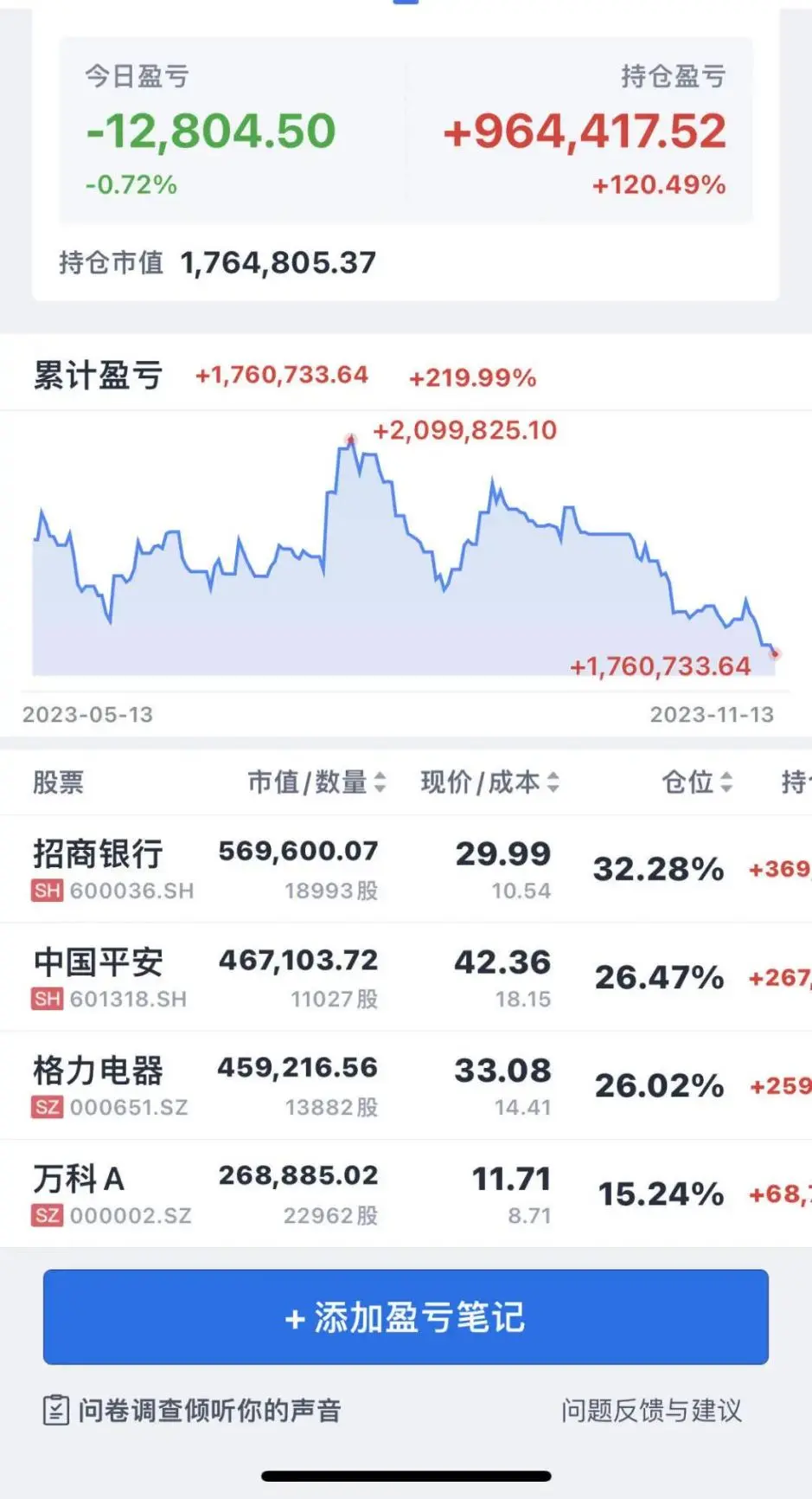结果可能更让你震撼:2013年11月11日收盘,招行,平安,万科,格力,各买20万,合计投入80万。