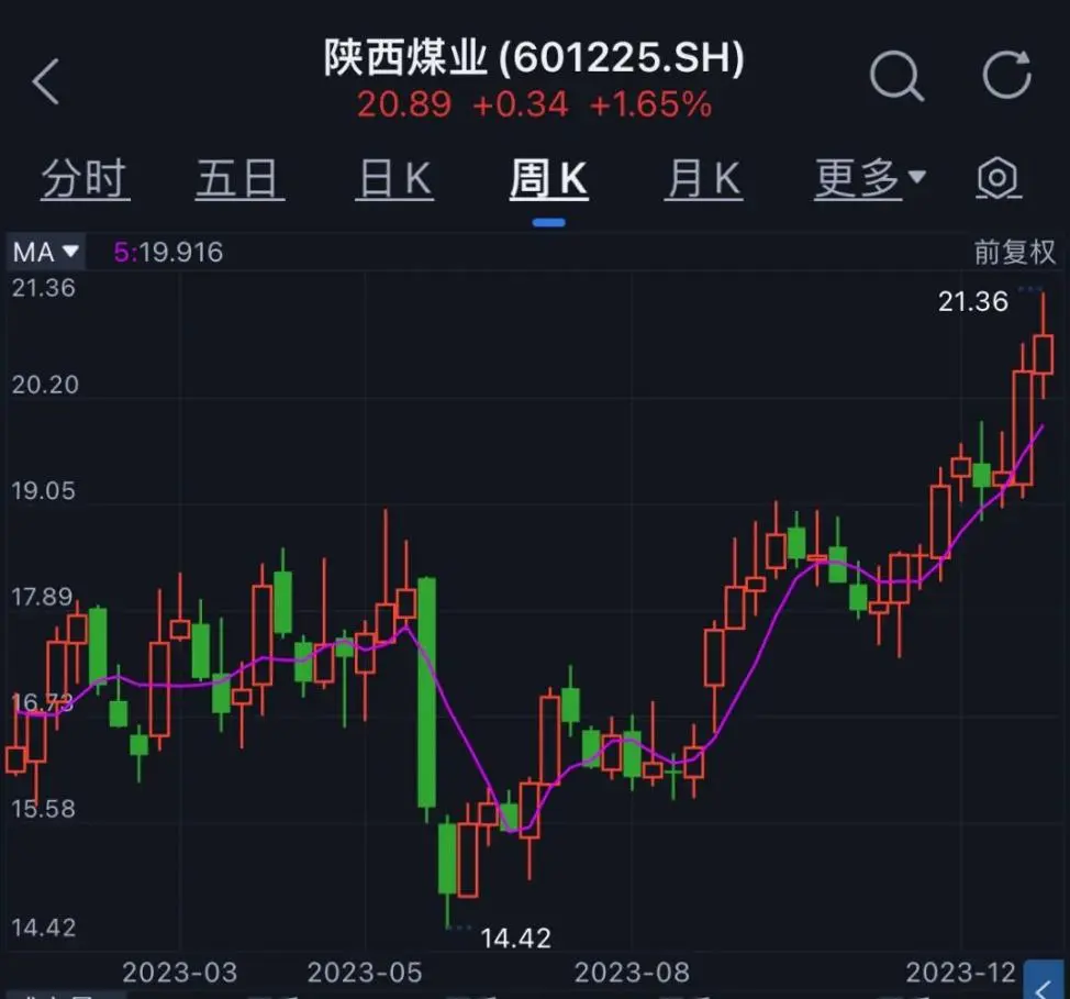 陕煤是5月30日跌破17.3元买点的(当日最低17.24),5月31日创下陕煤本轮最低价16.6元(7月12日实施每股2.18元的分红后,16.6元经过除权成为K线图上的低点14.42元)。