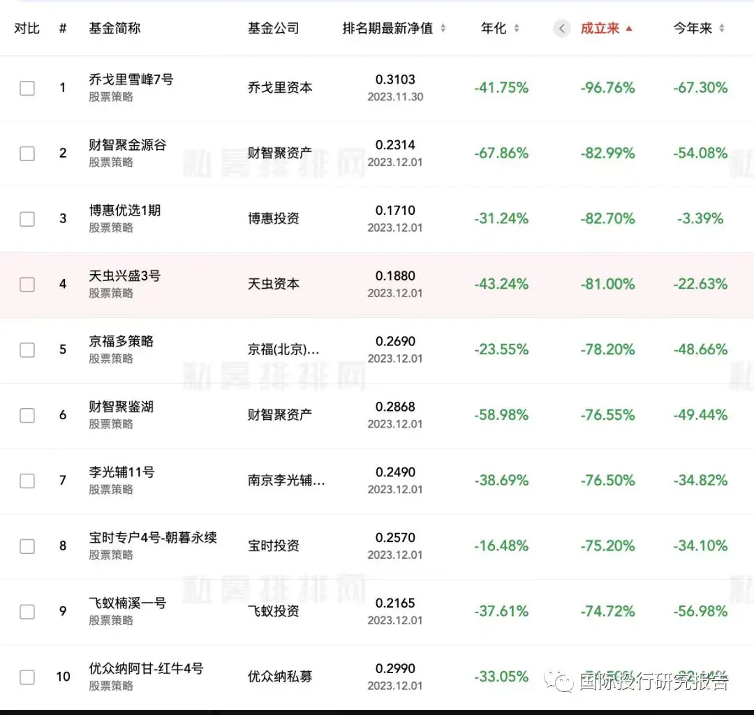 第三张,最惨私募(下图里第一名的净值少个零,应该是0.031)