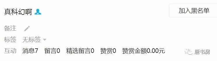 再看这位在书房里的全部脚印,没参与过任何文章下的讨论,只有给唐书房后台发送信息的记录。