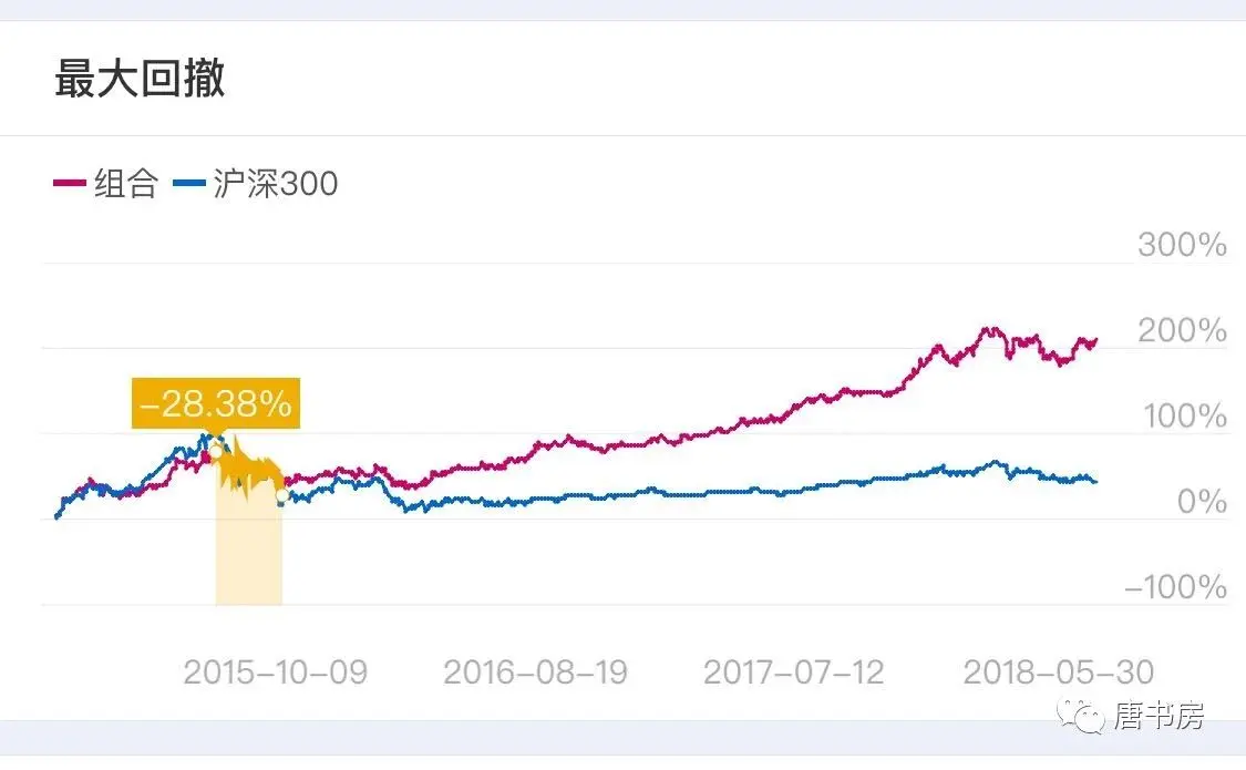 另外还有两次接近腰斩的跌幅,最近一次书房里大部分朋友应该在场:2015年下半年跌幅49%,同期老唐实盘组合满仓在场,市值“回撤”28.38%。