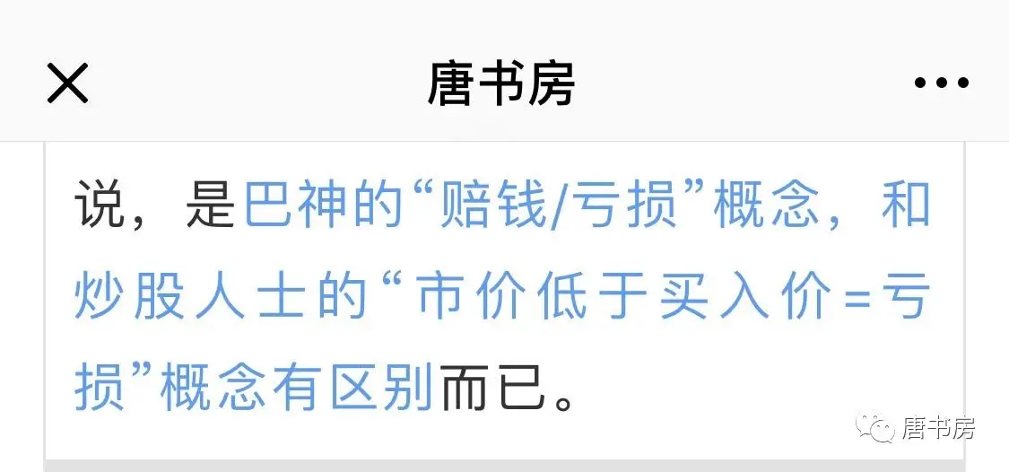然而,Things change,people change,世事无常,即便如巴神,也不敢吹牛对产出数量的估算从不走眼。就在《如何才能不赔钱》文中,老唐还列出了即使按照巴神的亏损概念,也实实在在亏损过的案例。