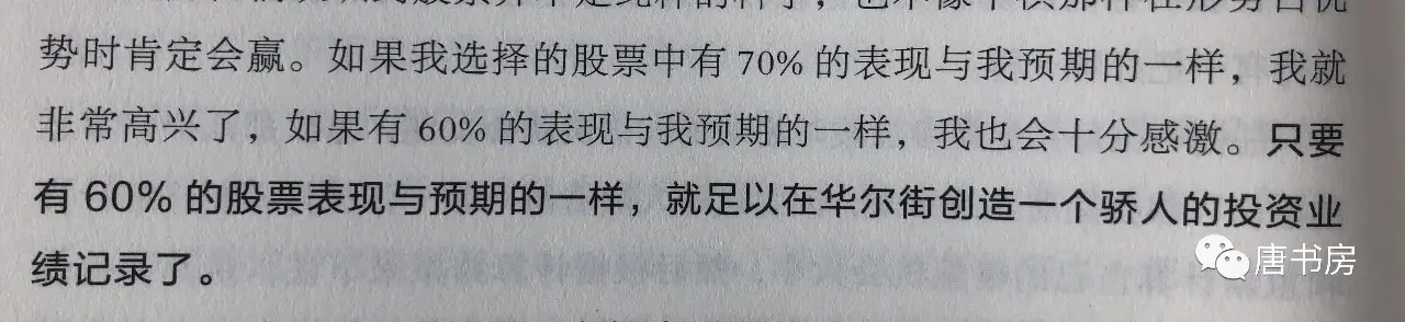对于这种情况,又如何面对呢?很简单,别做完美主义者,别期望自己在每一场战斗中都获取胜利。引用彼得.林奇的经验说:只要有60%的股票表现与预期的一样,就足以在华尔街创造一个骄人的投资业绩记录了。