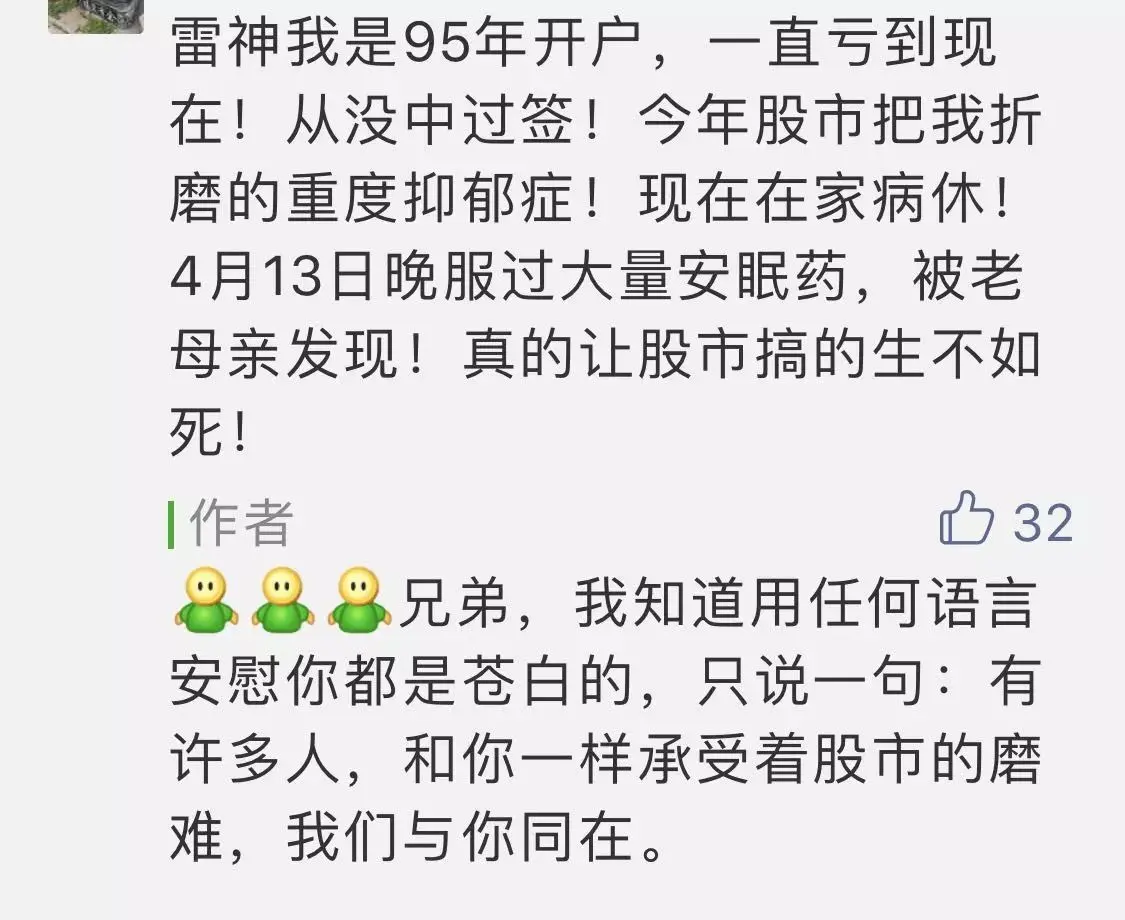 要说的是,好奇看了他的公众号下面的留言,瞠目结舌。下面的留言,展示的是一个我几乎遗忘的市场人群。恐怖,灰暗,无助,没有希望,没有未来,而且,更悲哀的是,我也没看出来这些人未来有什么改变的可能……截一条置顶留言做代表,下面还有很多同样悲观绝望的类似留言