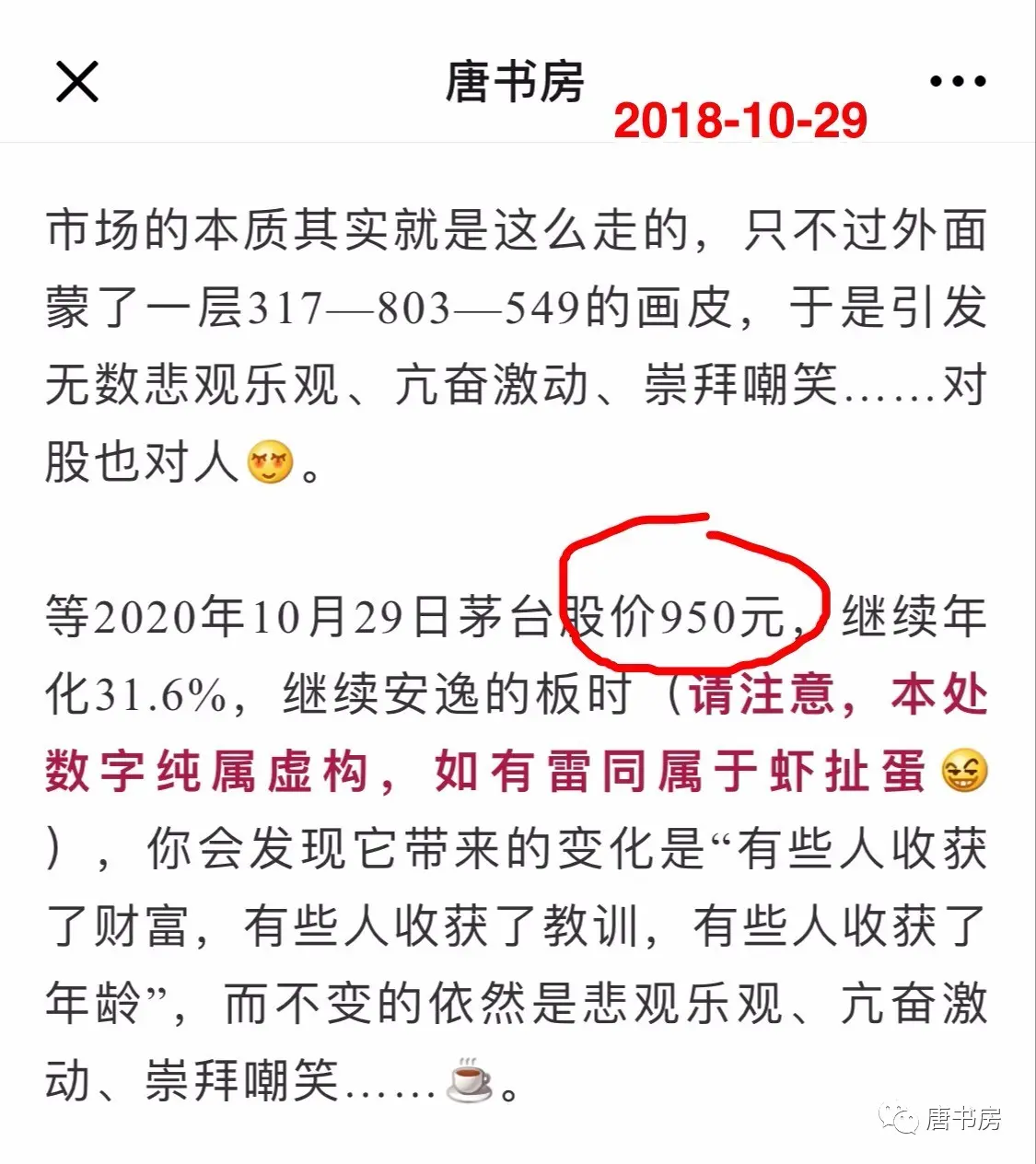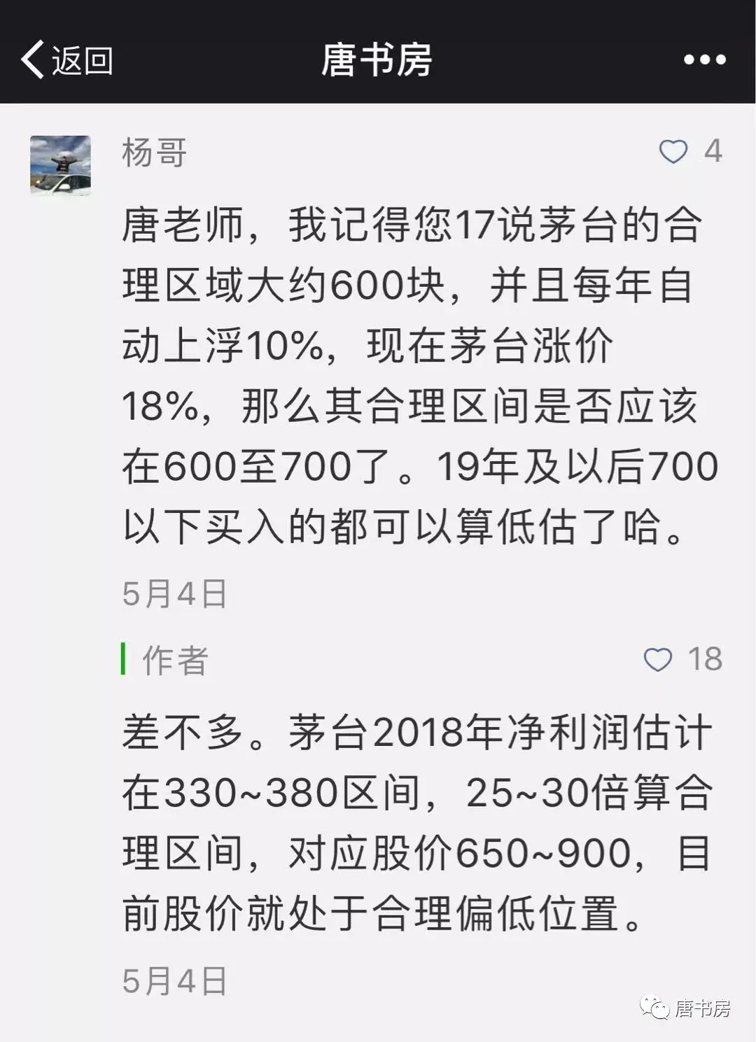 ——上述两个值,在2018年12月28日文章《老唐的2018》,和2019年3月29日文章《茅台的喜与分众的雷》里。