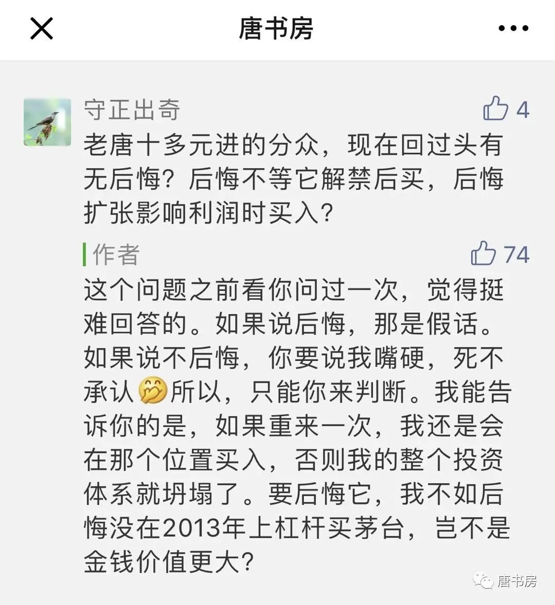 这也是老唐一贯的坚持的“长期看,股权优于现金,尽可能不做卖出”的底层思维所导致的操作层面行为。