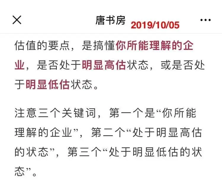 这就是我去年10月在《至简三板斧》里强调的:估值是/且只是/针对你所能理解的企业。也就是所谓能力圈原则。