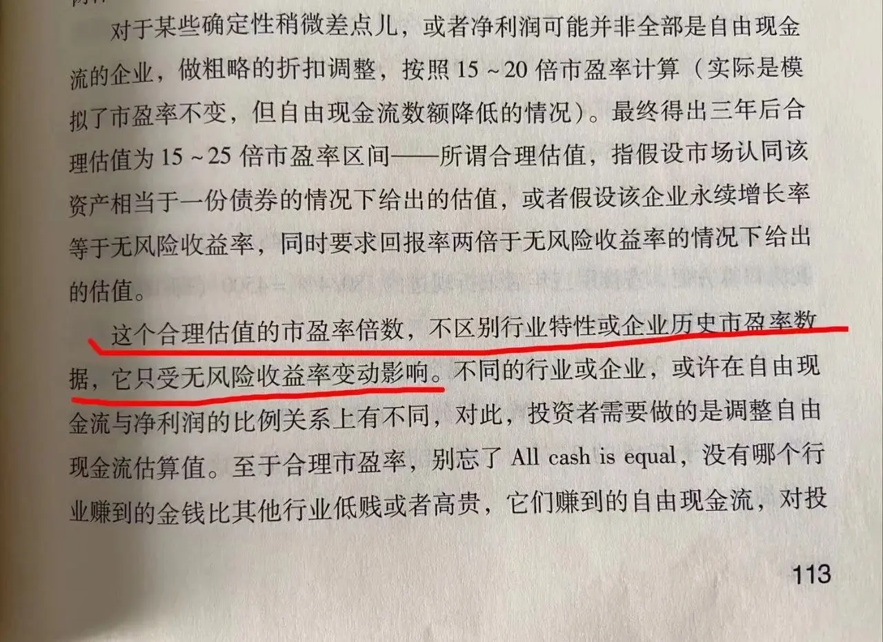 哪怕我已经一再强调这个市盈率倍数只与无风险收益率有关:
