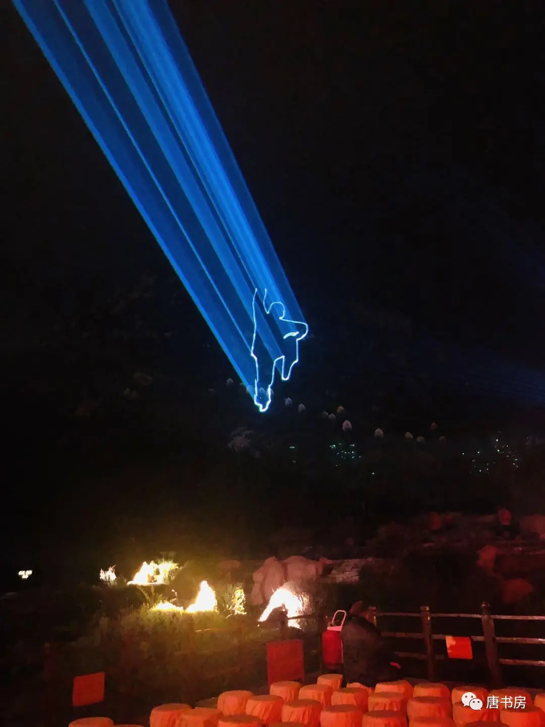 其次,因为是山水实景,舞台非常大,大致就是两座山+一个峡谷的组合吧,最高处据说有1400米,观众席比较矮,绝大多数时间需要仰起脖子看演出。