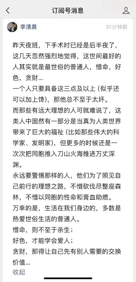 「这世间最好的人其实就是最世俗的普通人,惜命,好色,贪财…一个人只要具备这三点及以上(似乎还可以加上馋),那他总不至于太坏。