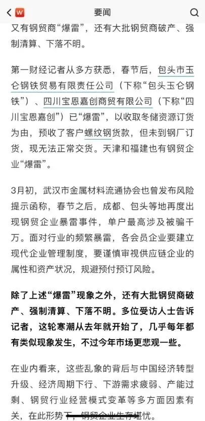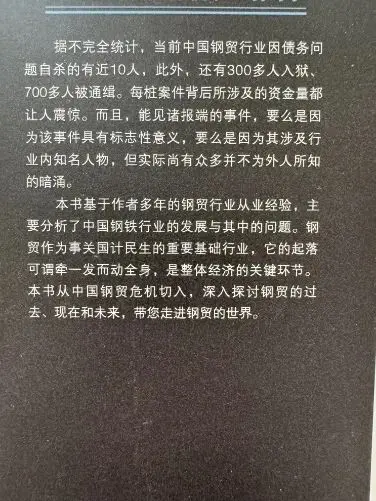 我书架上还有本2014年出版的《钢贸风云》,封面写着“行业内几乎所有人都在裸泳”、“如何走到今天这步的?”,然后此时又收到上面这种大批暴雷的新闻。