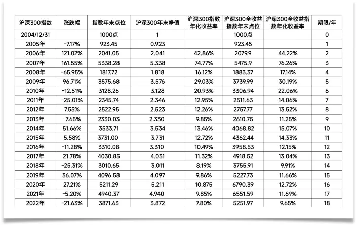 2004年底至2022年底,18年5.25倍,年化回报9.65%。