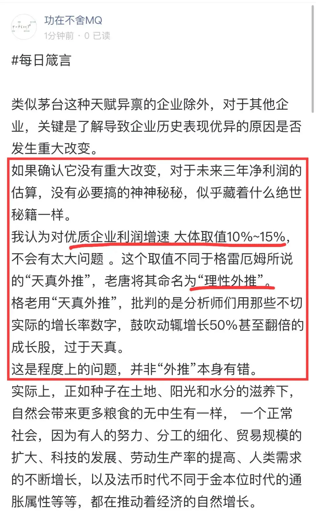 唐朝:五年前的这段阐述,堪称“估值法去魅决”,连投资过程里唯一的一个未知数,也撕开神秘面纱,给出了解决办法。谢谢不舍打捞。