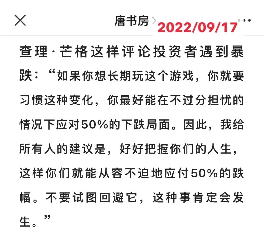 最后,在这大跌时刻,将老芒格的一段名言再次送给大家。
