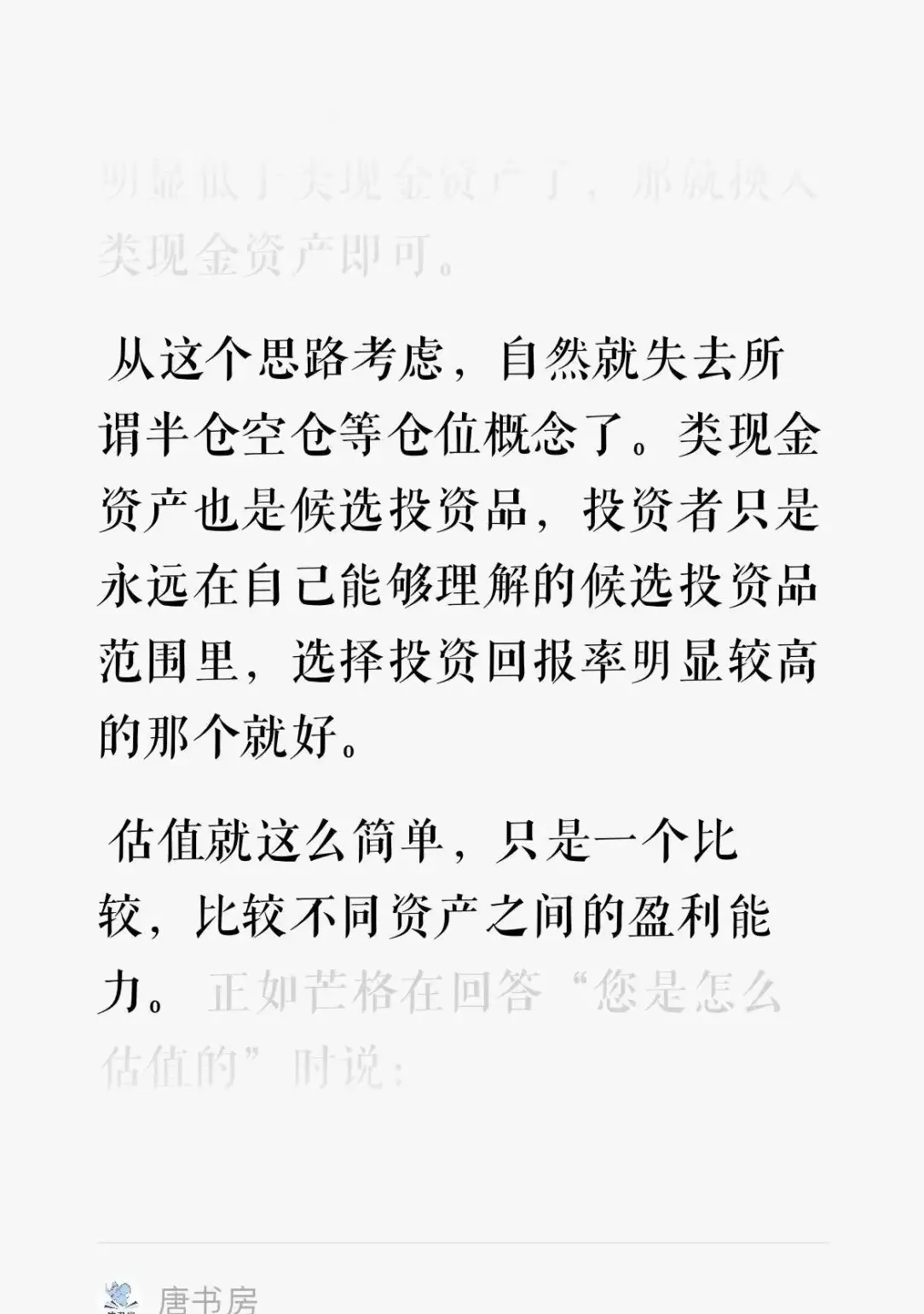 紧跟着对估值的定义为『任何资产都是投资对象,我们只是对不同资产盈利能力的比较』,更让人感觉抓住了投资中的圣杯。