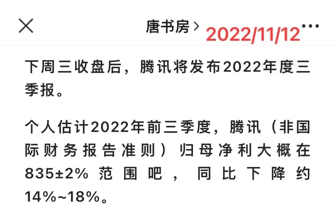 仅对持股和交易感兴趣的朋友,读到这里可以退出了。后面是对上述事件的展开,无新内容。1.腾讯三季报简析及展望周三盘后,小企鹅的三季报如期而至,总体结果是“略”超我之前的预期。