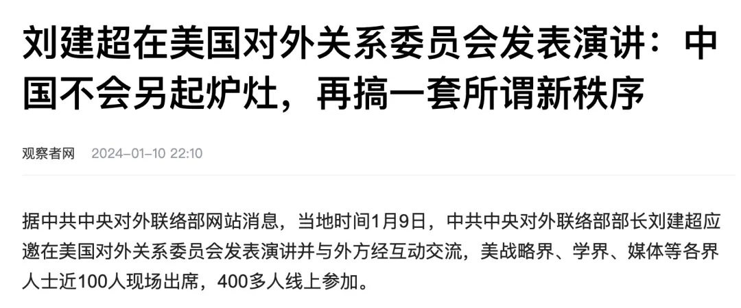 “中国是现行国际秩序的创建者、受益者、维护者,不寻求改变现行国际秩序,更不会另起炉灶,再搞一套所谓新秩序。”