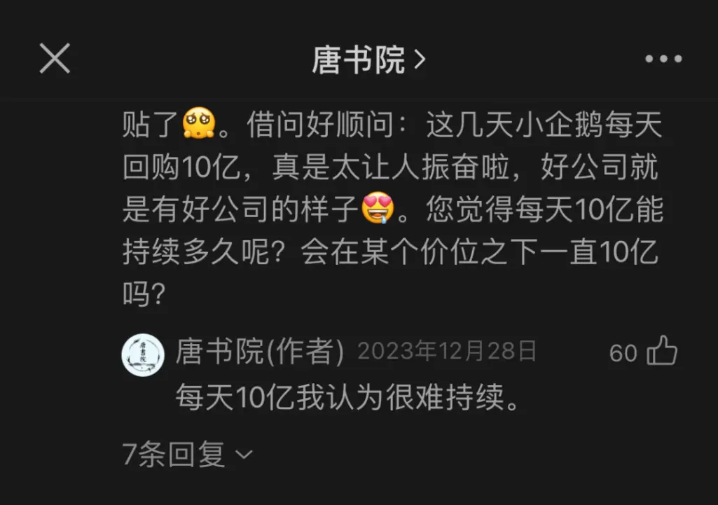 先声明,我没有特殊渠道,我不知道缩减日回购额出于什么考虑。我只是认为每天10亿很难持续,每天5亿说不定还可以长流水。
