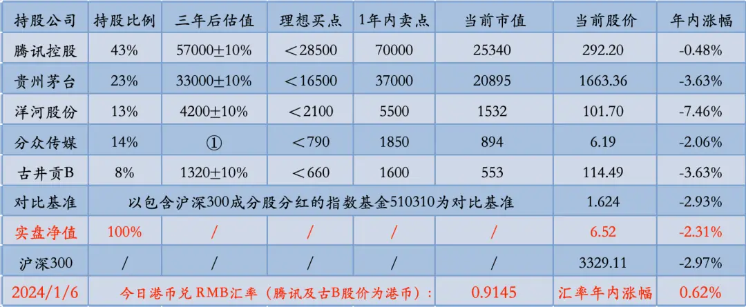 年内净值基本和指数保持同步,核心贡献来自小企鹅。除小企鹅之外的其他四只持股,开年前两周的股价表现全部跑输指数。