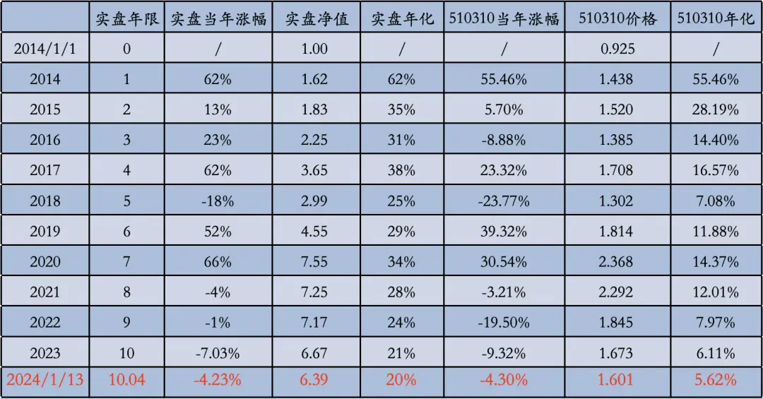 注:老唐实盘年度收益率,取「基金净值法收益率」和「资金加权收益率」二者之间的低值记录,均不含新股收益。