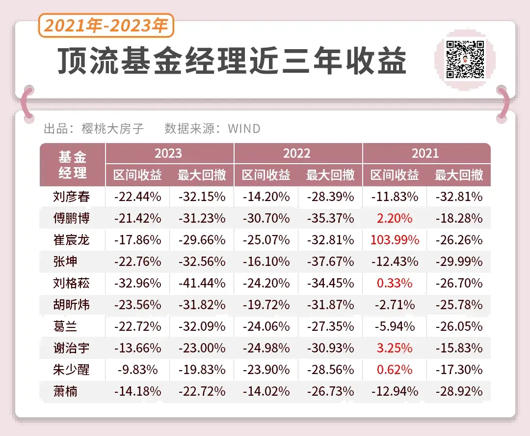 前两天还无意间在微信看一看里,遇到两张市场“顶流”基金经理的业绩数据,我当时在小圈子里开玩笑说,“这三年,啥流都不好使”。