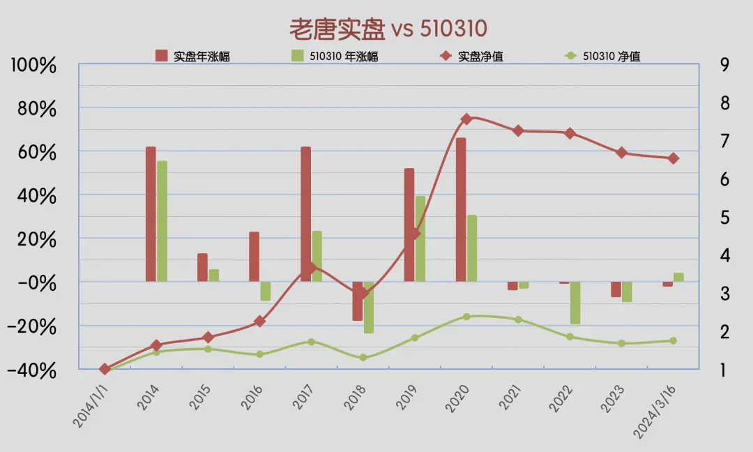 2024年内,沪深300指数基金510310涨幅4%,老唐实盘净值涨幅-2.26%,年内连续第九周跑输指数。