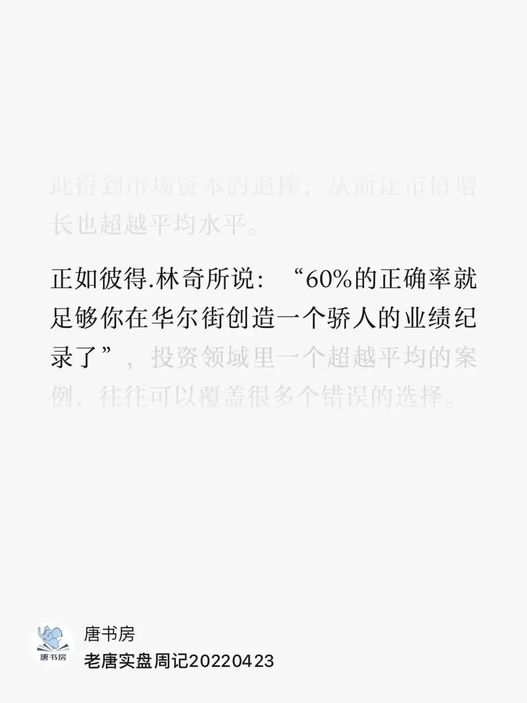 “60%的正确率,就足够你在华尔街创造一个骄人的业绩纪录了——彼得·林奇”。