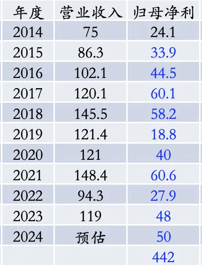 现在实际数据是48.3亿,多4.3亿导致十年平均利润高0.43亿,影响微乎其微。