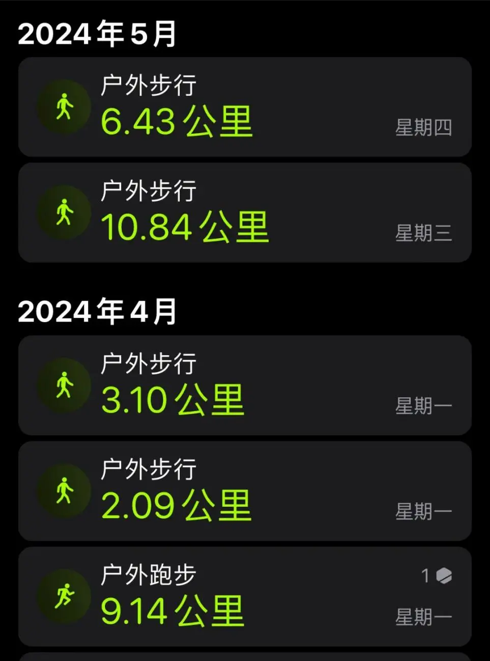 本周跑步9公里,散步约22公里。