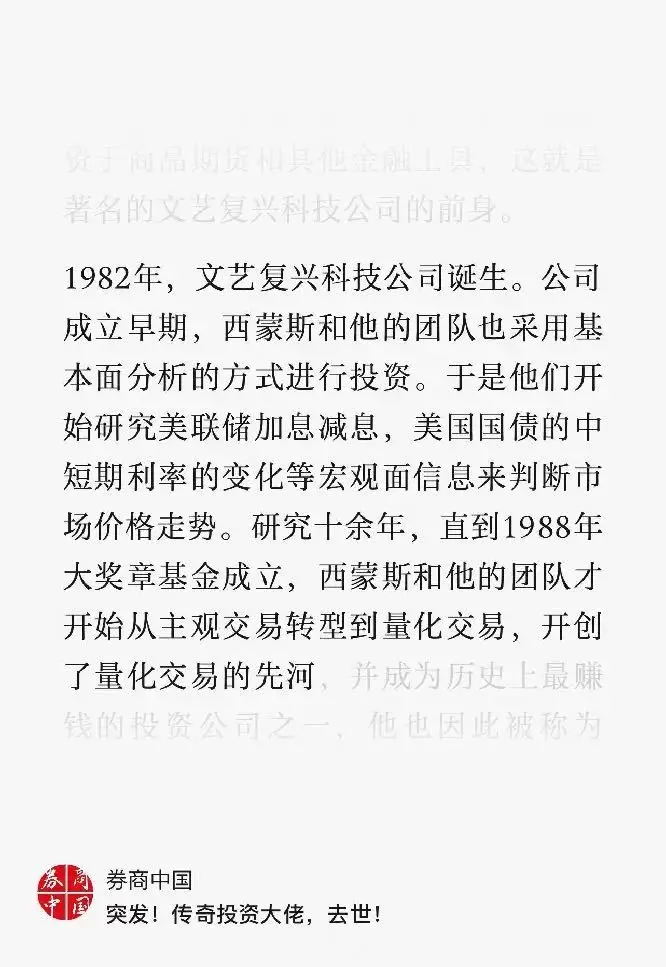 祝老人家安息之余,我聊聊对西蒙斯远超巴菲特的收益率数据所引发的一些感触。